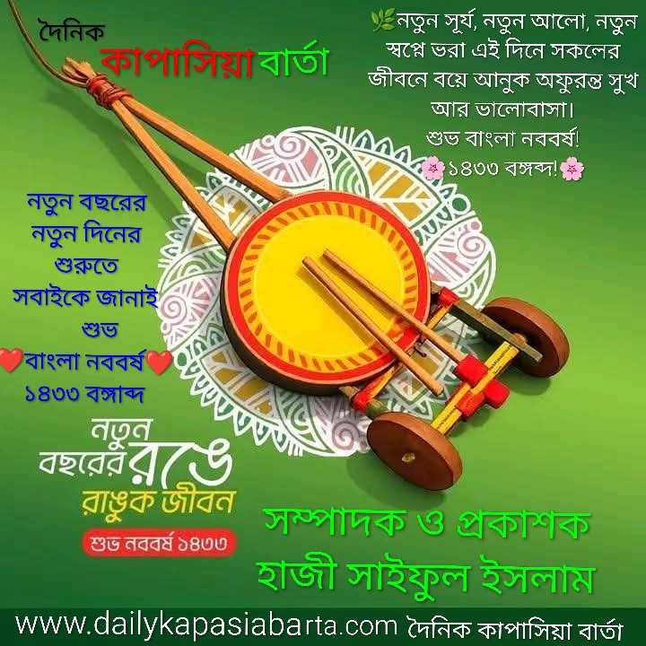 “দৈনিক কাপাসিয়া বার্তা”পরিবারের পক্ষ থেকে সকল পাঠকদের নতুন বছরের শুভেচ্ছা